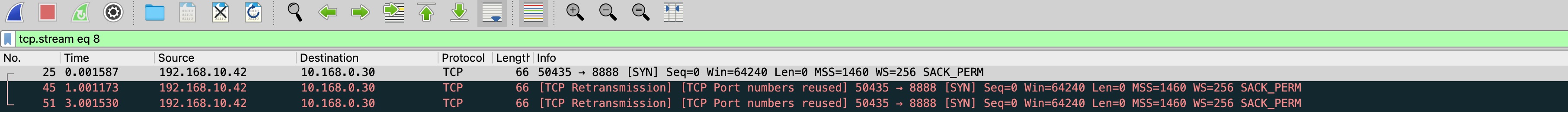 tcp.stream eq 8 ~ tcp.stream eq 9 8-9的2个是tcp建立连接完全失败的;